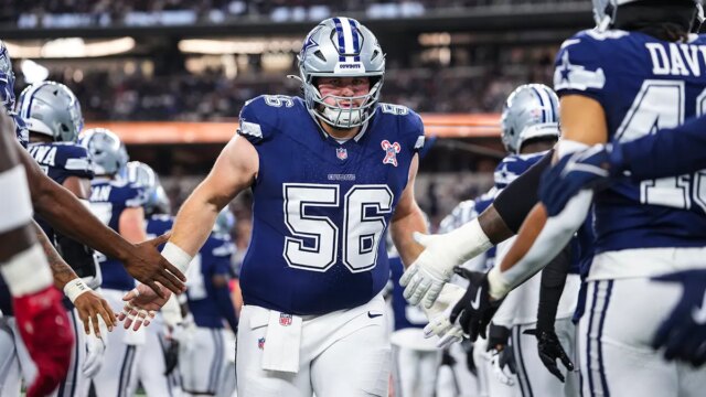 Cooper Beebe dari Dallas Cowboys keluar dari terowongan untuk pertandingan melawan Los Angeles Chargers di AT&T Stadium 21 Desember 2025, di Arlington, Texas. (Cooper Neill/Getty Photographs)