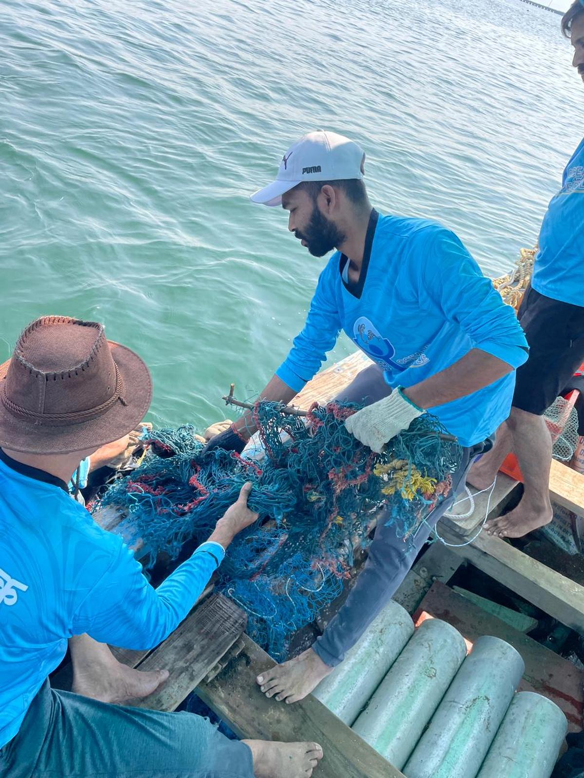 Puing-puing yang dikumpulkan selama perjalanan ini memiliki berat sekitar 400 kg yang berasal dari zona terumbu saja, dengan jaring hantu menyumbang hampir 60% dari sampah tersebut. Barang-barang lainnya termasuk botol plastik, kaleng logam, karung, botol kaca, dan pecahan fiberglass dari perahu, kata Pak Pawar.