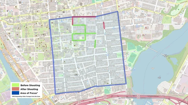 FBI membagikan kronologi kapan video tersebut diambil, termasuk beberapa video yang tampaknya diperoleh dari kamera pribadi warga. Orang yang berkepentingan terlihat dari sekitar jam 2 siang pada hari Sabtu hingga setelah jam 4 sore, sekitar waktu penembakan terjadi.