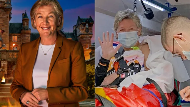 A fiel Amanda, que foi banida do castelo das Terras Altas da Escócia esta semana após ser injustamente suspeita de comportamento traidor, bateu em uma parede em alta velocidade enquanto andava de bicicleta.