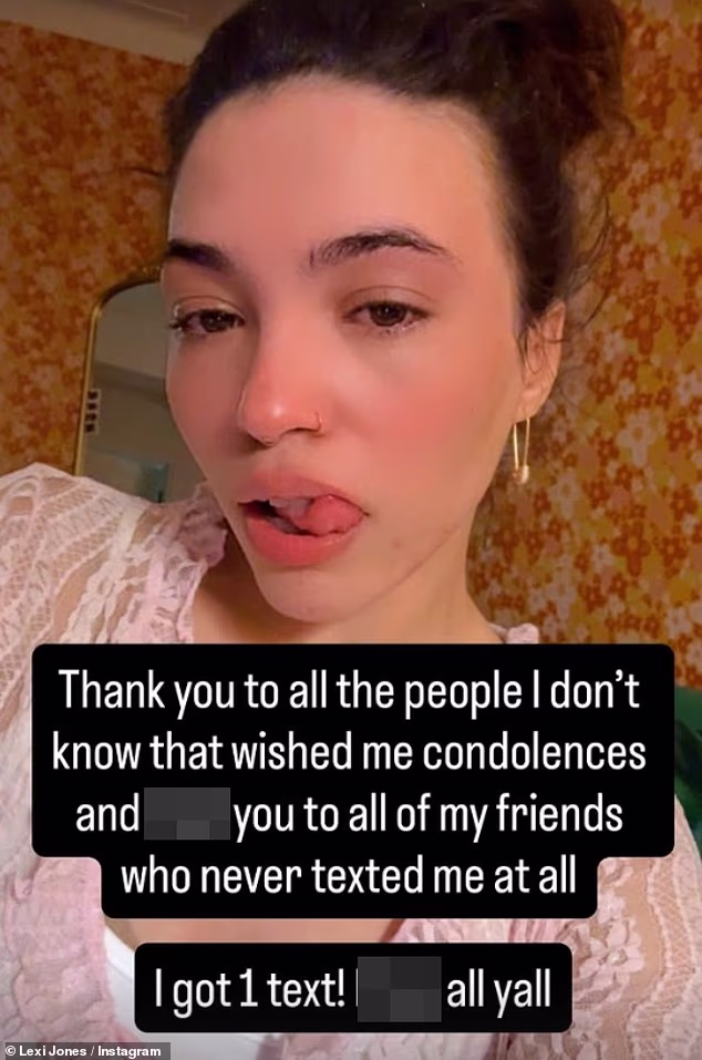 Compartilhando uma selfie com os seguidores do Instagram, ela escreveu: ‘Obrigada a todas as pessoas que não conheço que me desejaram condolências, e foda-se a todos os meus amigos que nunca me enviaram mensagens de texto.’