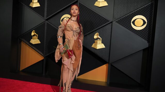 Tyla pode ter uma música intitulada “Chanel”, mas ela escolheu Dsquared² para o tapete vermelho. A cantora sul-africana usava um look creme decotado que apresentava uma cauda de penas longas e detalhes de contas douradas. Ela estilizou o visible com um penteado solto e tranças. O vencedor de melhor novo artista, Dean, usou um look Chanel em dois tons, branco e preto, do recém-nomeado diretor criativo Matthieu Blazy. A parceria de Dean com Blazy fala muito sobre como a indústria da moda a vê, disse LeSavage.