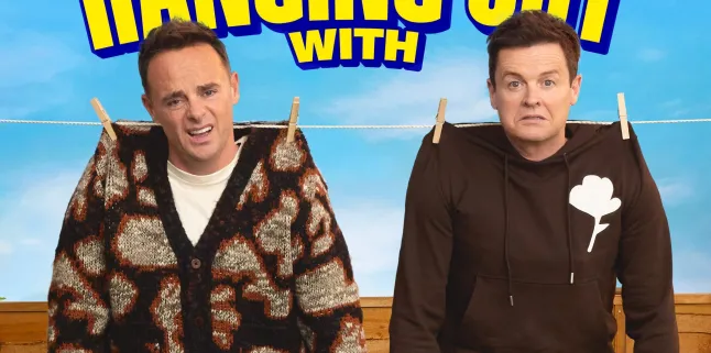 Os pés de Dec ficam suspensos no ar em um anúncio do novo podcast Hang Out with Ant & Dec