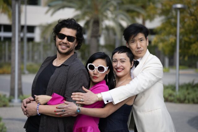 Narumi Inatsugu, a partir da esquerda, Cat Ce, Ana Tuazon Parsons e Jonathan Sposato no escritório do The Instances em El Segundo.