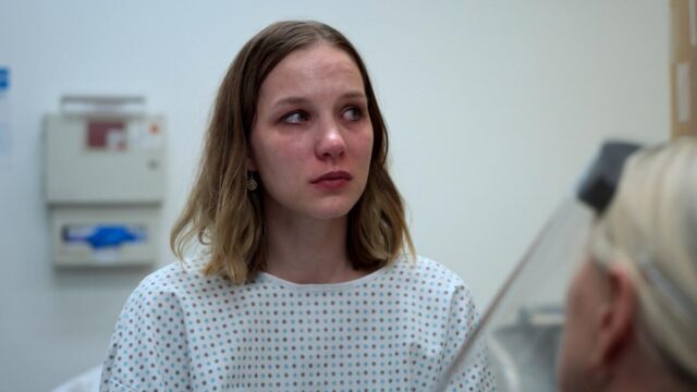 Mas antes que as câmeras se aventurem na sala com o paciente, Dana dá a Emma (Laëtitia Hollard), recém-formada em enfermagem, uma visão geral. A SANE é uma enfermeira de agressão sexual; eles realizam exames periciais, coletam provas e as entregam à polícia, caso seja feita denúncia. Eles também fornecem recursos, apoio e podem até testemunhar em tribunal.
