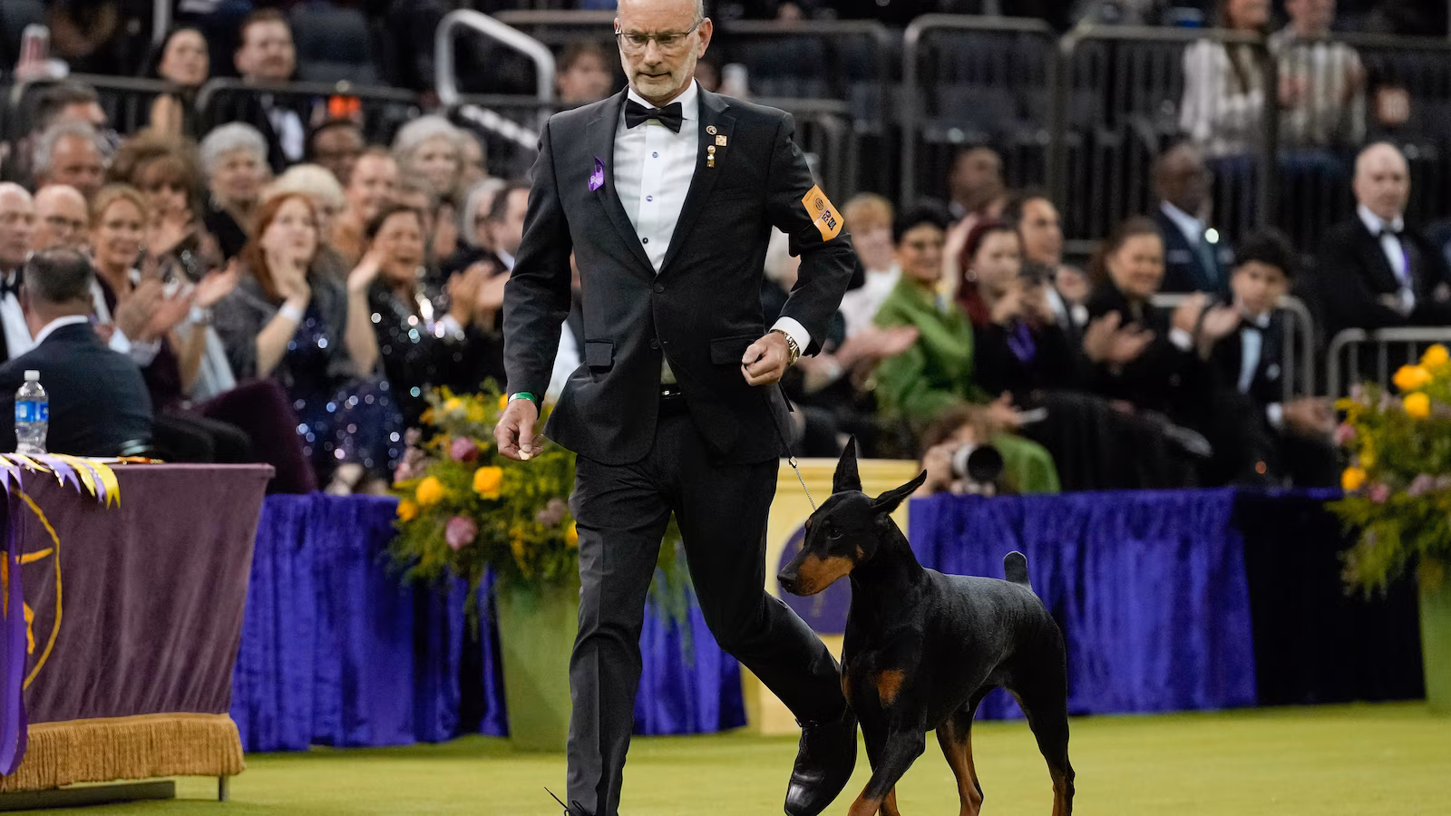Um Doberman Pinscher chamado Penny ganhou o prêmio de melhor present na noite de terça-feira no Exposição canina do Westminster Kennel Clubrede O prêmio mais cobiçado dos cães de exposição dos EUA – e dando ao veterano Andy Linton outra vitória depois de quase quatro décadas. Linton foi o melhor da exibição em 1989 com outro Doberman, chamado Indy.