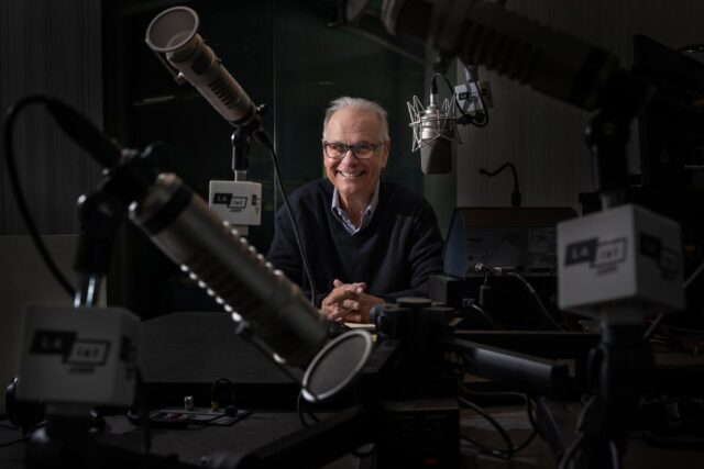 Larry Mantle apresenta a revista LAist “Airtalk”.