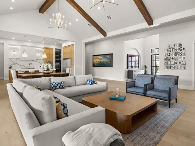 Possui ainda cinco quartos, quatro banheiros e meio e uma cozinha gigantesca com adega refrigerada e forno duplo Thermador de 30″.