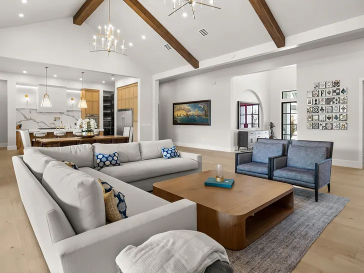 A propriedade de 5.772 pés quadrados está localizada em Gotha, cerca de 18 quilômetros a oeste de Orlando. A arquitetura é incrível… com tetos abobadados, vigas de madeira personalizadas e inside em mármore.