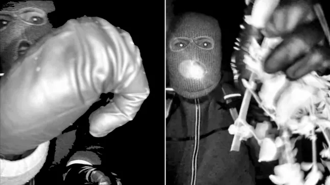 A filmagem os mostra na varanda da frente de uma casa tentando obscurecer a câmera de vigilância, eventualmente agarrando uma planta para cobrir a câmera.