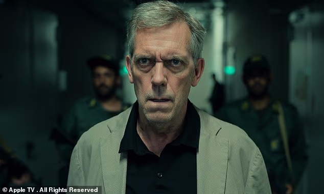 Hugh Laurie como Eric Peterson em Teerã, da Apple TV, que foi co-criado e produzido por Dana Eden