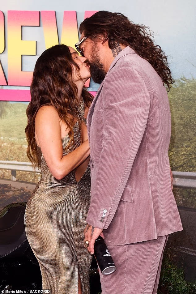 Jason Momoa, 46, deu um beijo ardente com sua namorada Adria Arjon, 33, na estreia de seu novo filme The Wrecking Crew, na Leicester Sq., em Londres, na quinta-feira.