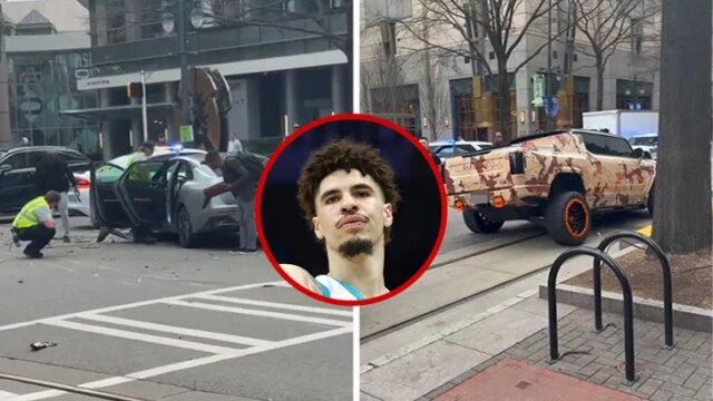 Bola LaMelo esteve envolvido em um acidente de carro em Charlotte na quarta-feira, com o Hummer personalizado do Hooper batendo em outro veículo em um cruzamento, e tudo foi capturado em vídeo.