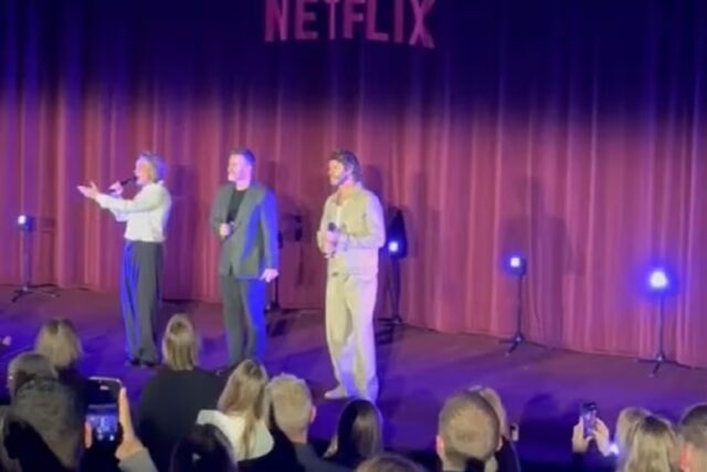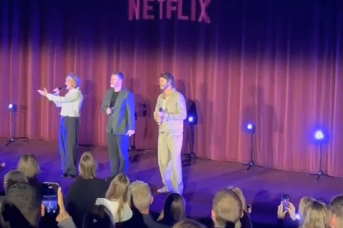 Os fãs do Take That ficaram em frenesi quando aqueles que tiveram a sorte de assistir a uma exibição especial de sua nova série da Netflix foram surpreendidos pela própria banda.