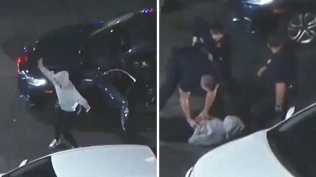 Ela fica sóbria rapidamente quando os policiais descem sobre ela, deitando-se rapidamente na calçada com as mãos nas costas e se submetendo. Los Angeles KTTV-TV relata que a mulher não identificada foi levada sob custódia, mas nenhuma acusação foi anunciada.