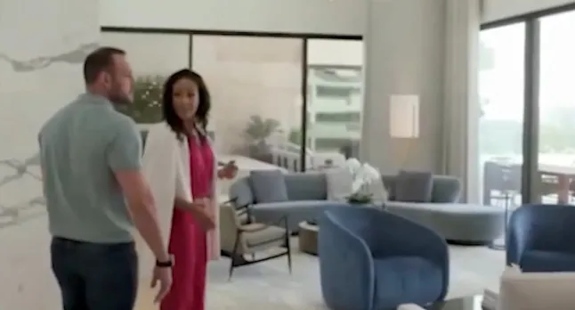 O narrador do programa, Will Mellor, diz aos telespectadores: ‘No Palm Jumeirah, a nova agente Nadia [Cortés] encontrou-se como uma bilionária britânica que pretende ampliar seu portfólio imobiliário.’