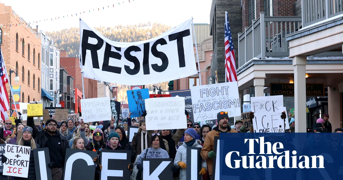 Os protestos presenciais foram menos populosos este ano, embora cartazes e slogans anti-ICE caseiros tenham espalhado a rua principal. Na noite de domingo, cerca de 100 pessoas – incluindo a estrela de O Senhor dos Anéis, Elijah Wooden – reuniram-se lá para um comício de 10 minutos “Sundancers Soften ICE”. “As pessoas que foram mortas ilegalmente a tiros em Minnesota – é horrível”, disse Wooden Prazo final. “Aqui estamos neste competition de cinema que tem como objetivo unir as pessoas; trata-se de contar histórias de todo o mundo. Não estamos divididos aqui; estamos nos unindo.” Com mais tempo para organizar e espalhar a palavra, uma multidão maior marchou descendo Fundamental na tarde de segunda-feira, carregando faixas “RESIST” e gritando “Abolir o ICE!”