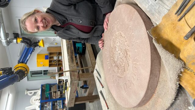 A talha, que vai adornar o chão de um esconderijo de vida selvagem, abrigo escondido na floresta para observação da natureza, é um exemplo do que a atraiu na cantaria: a capacidade de aliar o amor pela natureza ao objetivo de fazer algo que dure anos.