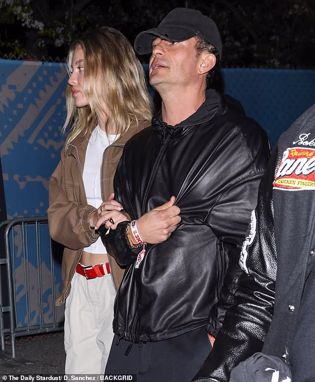 Quando eles saíram do estádio juntos, ela parecia esconder o rosto com seus longos cabelos enquanto Bloom usava uma jaqueta de couro preta e boné combinando, enquanto acrescentava calça preta e tênis cinza.