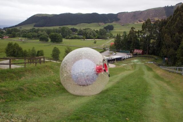 Zorbing é um esporte em que o cavaleiro está dentro de uma grande bola transparente e rola colina abaixo. A palavra ‘Zorb’ refere-se ao orbe e supostamente ao país onde este esporte começou.