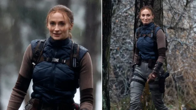 Sophie Turner foi vista em ação como Lara Croft pela primeira vez, enquanto enfrentava a chuva torrencial e o frio enquanto realizava suas próprias acrobacias durante as filmagens.