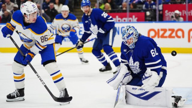 Dahlin marcou o gol verde quando o capitão do Buffalo se viu na frente de Woll fora de um ciclo antes de desviar um chute de Samuelsson – seu parceiro de defesa – no remaining do segundo período para uma vantagem de 4-3.