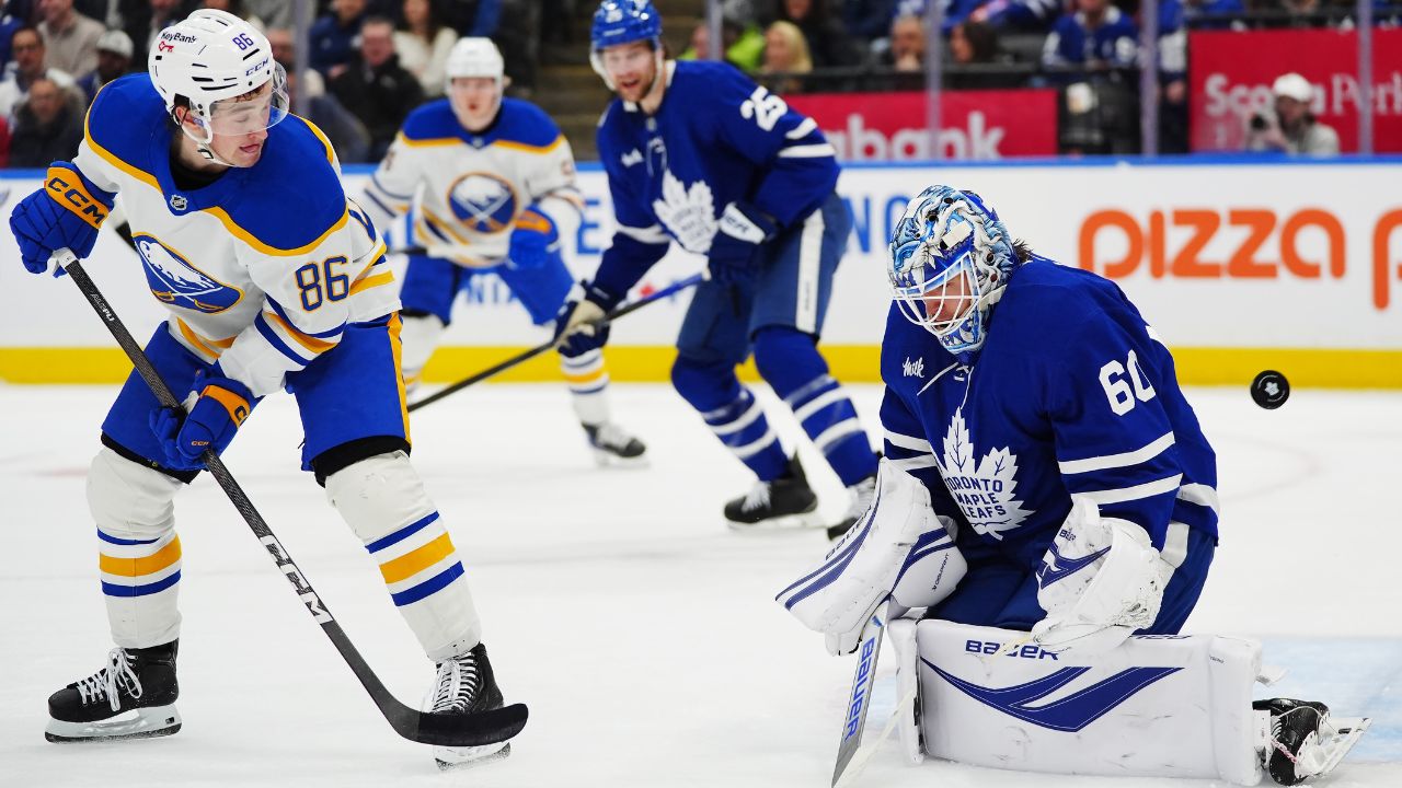 Sabres: Doan marcou seu primeiro gol desde que assinou uma prorrogação de contrato de sete anos. O pai de Doan, Shane, é conselheiro especial do gerente geral de Toronto, Brad Treliving.