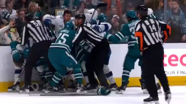 O ataque dos Sharks de San Jose Ryan Reaves tentou passar uma mensagem contra o Lightning de Tampa Bay: não toque em Macklin Celebrini.