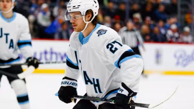 O ataque do Mammoth de Utah Barrett Hayton não foi visto porque ele escolheu o primeiro-ministro, mas os Devils de Nova Jersey, Samedi.