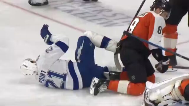 Ou, sa jambe droite s’est coincée nas células do defensor dos Flyers Cam York. Level est tombé lourdement sur la patinoire et imediatamente porté ses mains à son genou, qui like avoir effectué une peu agréable torsion.