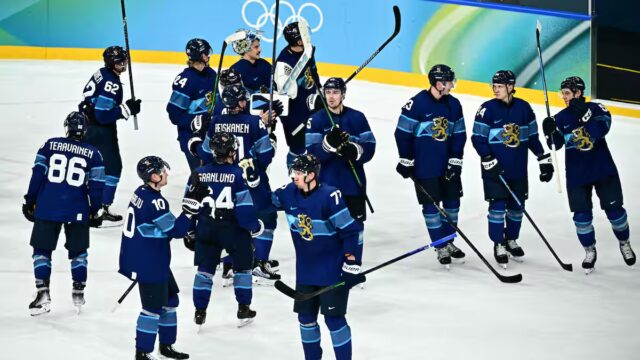 Un however d’Artturi Lehkonen prolongando a diferença, mercredi, na vitória de 3 a 2 da Finlândia contra a Suíça nas quartas de last do torneio olímpico de hóquei, na Itália.