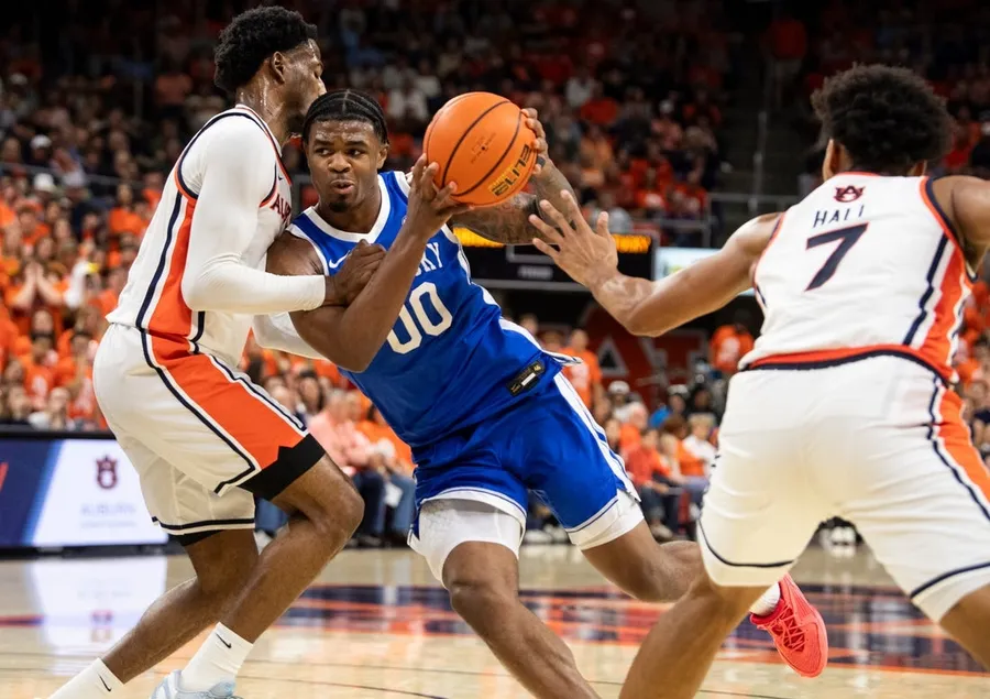 Auburn (15-12, 6-8) marcou 74-73 em um par de lances livres de Tahaad Pettiford faltando 14 segundos para o fim, depois recuperou a posse após uma falta ofensiva sobre Collin Chandler, do Kentucky. Kevin Overton errou um chute na pista na posse remaining de Auburn, e depois que Murphy errou um chute, Freeman acertou na terceira tentativa de Auburn. A posse remaining do Kentucky terminou com um passe desviado que impediu o chute.