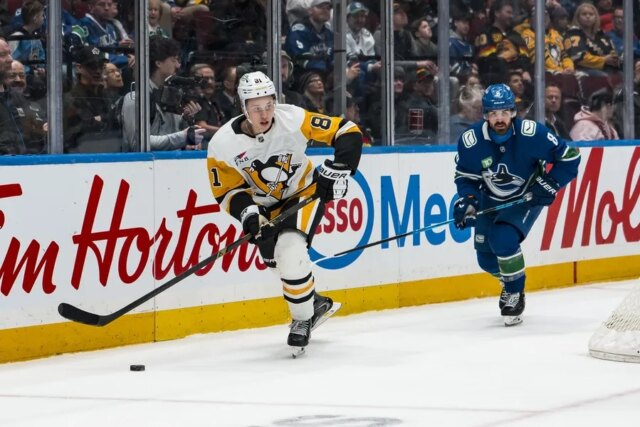 Pittsburgh abriu o placar aos 5:24 do segundo período, depois de pegar o defensor novato de Vancouver, Zeev Buium, na ponta ofensiva. Tommy Novak acertou um passe cruzado que Malkin desviou para seu 13º gol na temporada.