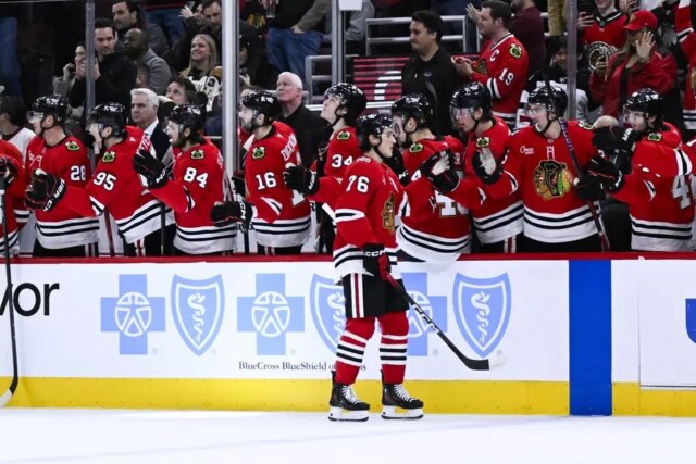 Chicago marcou duas de suas contagens no segundo período dessa maneira, com Slaggert redirecionando um chute de Colton Dach e Jason Dickinson desviando o remate de Crevier do ponto.