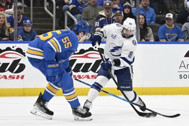 O Tampa Bay sofreu pressão durante os primeiros 17 minutos de jogo, mas Hofer fez 11 defesas para manter os visitantes fora do placar. Em seguida, os Blues marcaram dois gols no last do jogo e abriram uma vantagem de 2 a 0.