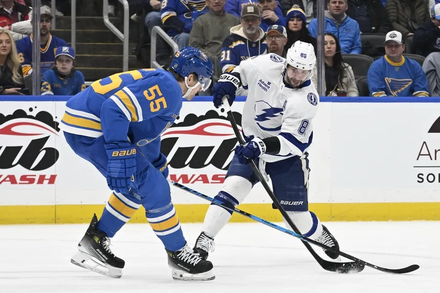 Joel Hofer fez 34 defesas no tempo regulamentar e na prorrogação e acrescentou mais três paradas nos pênaltis, enquanto o St. Louis Blues vencia o visitante Tampa Bay por 3 a 2 na sexta-feira, quebrando a seqüência de 11 vitórias consecutivas do Lightning.