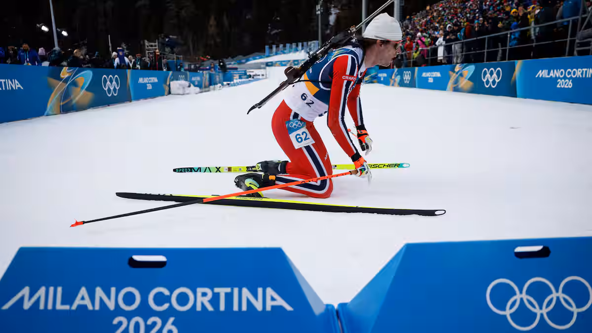 Um atleta norueguês ganhou confiança pelos menos improvisados ​​​​na televisão nacional em comemoração à medalha de bronze no biatlo, no carnaval e nos jogos de inverno na Itália.