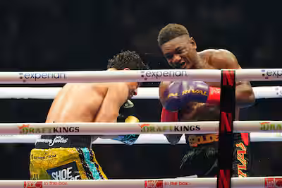Ao mesmo tempo, no closing da gala difundida por 40 milhões de espectadores pela Netflix, o mexicano Canelo Alvaraz também se juntou a ele em um jogo com cerca de 168 libras, que foi apresentado ao seu sucessor pelo americano Terence Crawford. Mais o veterano de 38 anos decidiu abandonar o ceinture para eventualmente anunciar seu retorno nas próximas semanas.