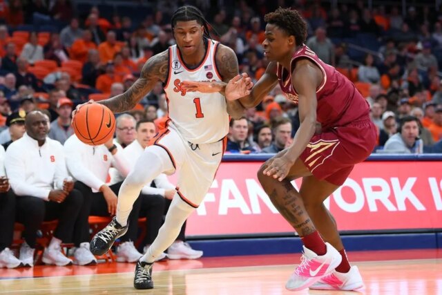 Tyler Betsey derrubou 6 de 8 tentativas de 3 pontos no caminho para 18 pontos para o Orange (12-5, 3-1 Atlantic Coast Convention), enquanto Naithan George deu 13 assistências para somar oito pontos. JJ Starling marcou 15 pontos para o Syracuse, que venceu seis dos últimos sete jogos.