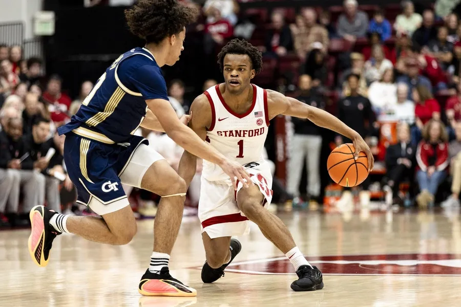 Depois de negociar a liderança por alguns minutos, Stanford fez uma corrida de 14-2 para assumir a liderança de 35-24 faltando 5:21 para o fim. Os Yellow Jackets diminuíram a diferença com uma sequência de 9-0, mas o Cardinal conseguiu uma vantagem de 43-39 no intervalo.
