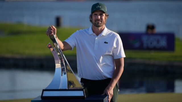 “Eu sabia que tinha duas tacadas para vencer – fiquei meio mais nervoso, para ser sincero”, disse ele. “É uma boa posição para se estar, mas eu estava um pouco nervoso. Mas muito feliz.”