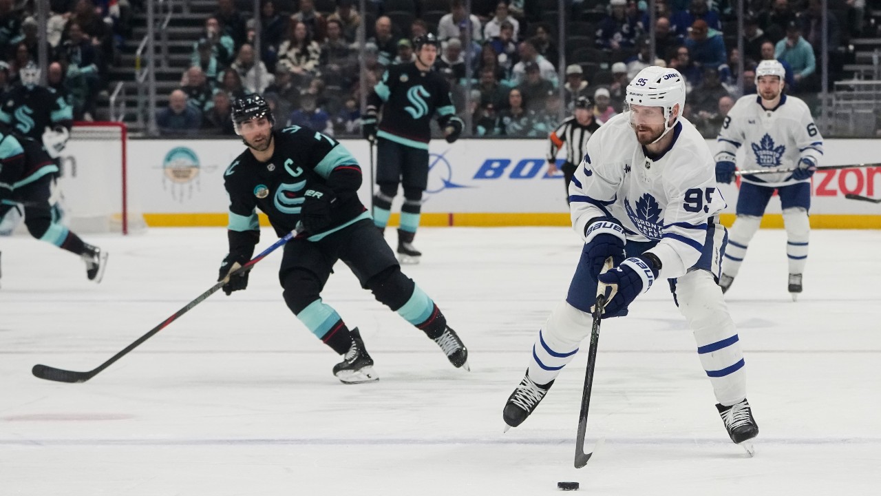 Berkly Catton, a escolha do Kraken na primeira rodada do draft de 2024 da NHL, levou uma forte pancada na cabeça de Oliver Ekman-Larsson, do Toronto, no primeiro período e não retornou.