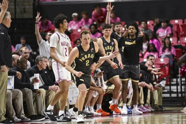 Depois que Maryland reduziu o déficit para 28-18 quando Mills fez cestas de 3 pontos consecutivas, Purdue respondeu com uma explosão de 21-6.