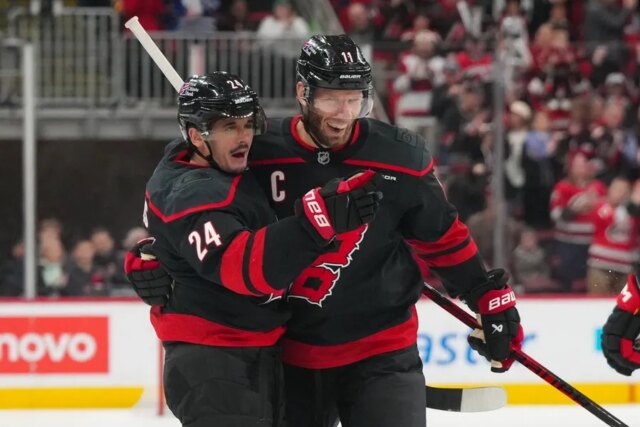 Seth Jarvis desfez o empate no terceiro período e Andrei Svechnikov fez um gol e uma assistência na vitória do Carolina Hurricanes por 2 a 1 sobre o Buffalo Sabres na tarde de segunda-feira em Raleigh, NC.