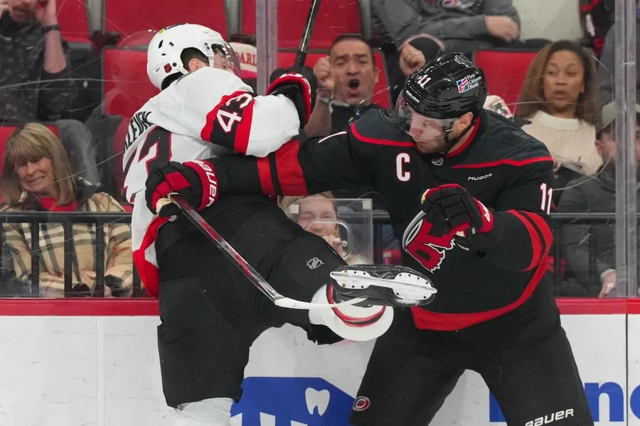 Seth Jarvis marcou dois gols, Sebastian Aho fez um gol e duas assistências e Jordan Staal marcou o gol do desempate faltando 5:07 para o fim, na vitória do Carolina Hurricanes sobre o Ottawa Senators por 4 a 3 na noite de terça-feira em Raleigh, NC.