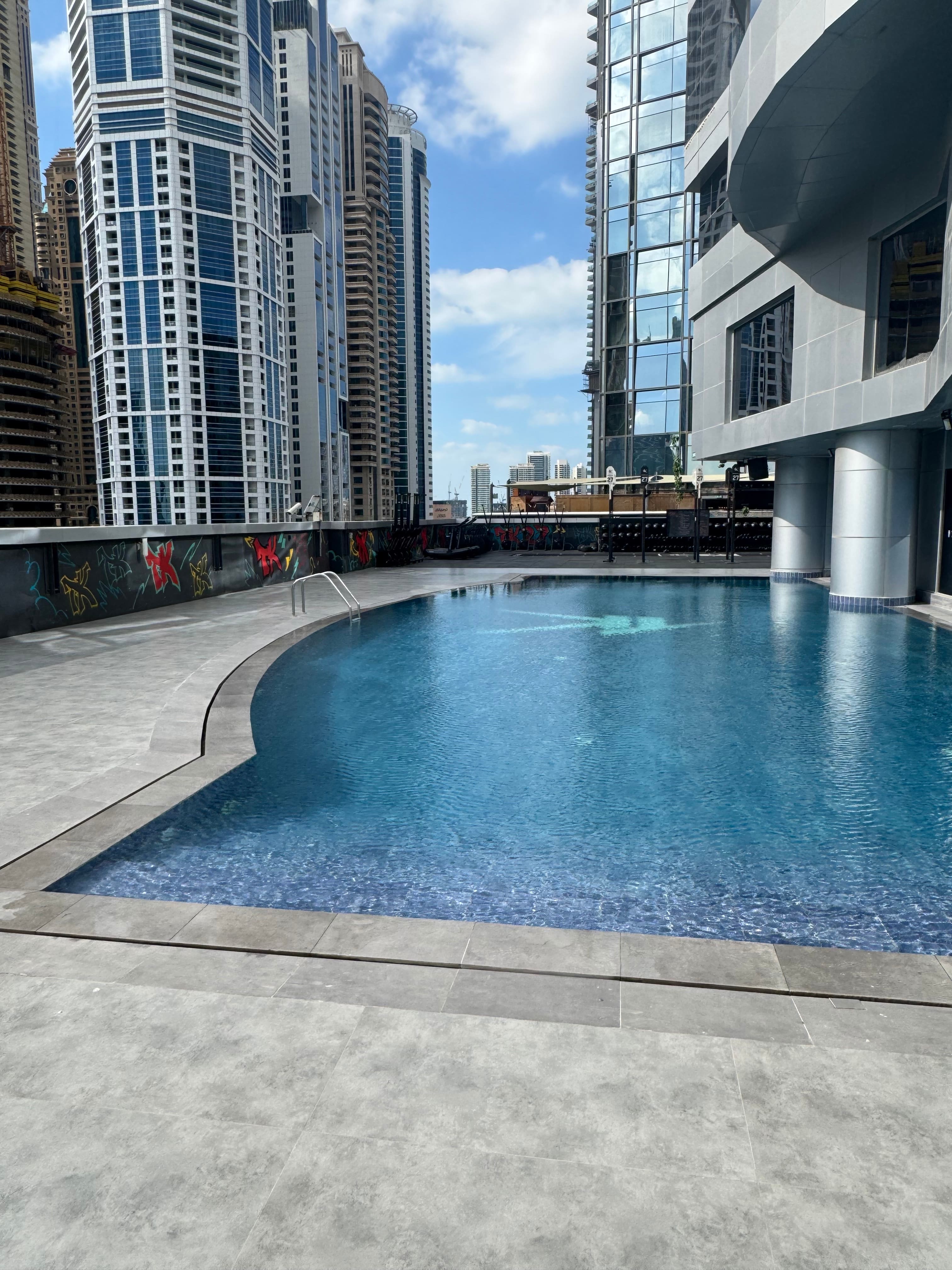 Depois de alguns dias nos Emirados Árabes Unidos, um déjà seguiu um curso de muay thaï, um curso de boxe e mais de multiplicar os movimentos «en salle», no toit de um edifício onde é possível observar múltiplos gratte-ciel.