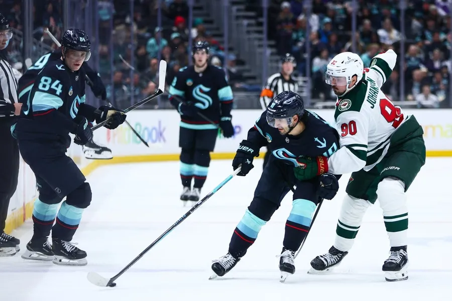 O Kraken venceu o Minnesota por 11 a ten no primeiro período, mas foi o Wild quem abriu a vantagem por 2 a 0.