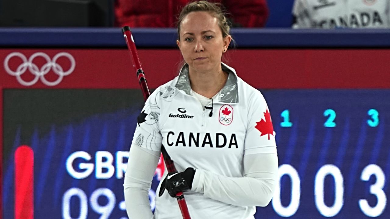 A canadense Rachel Homan teve sua primeira pedra removida por uma violação das regras denunciada pelas autoridades enquanto enfrentava a Suíça na primeira partida, no sábado.