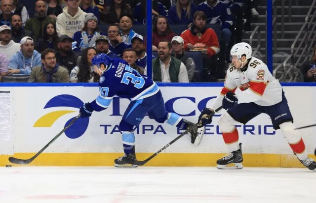 Depois que Matthew Tkachuk cobrou uma penalidade por conduta antidesportiva no ultimate do primeiro período, o Lightning lucrou com uma vantagem de 3 a 0 em seu primeiro energy play. Guentzel, autor do gol da vitória nas últimas duas vitórias do clube, balançou a rede a apenas 1:14 do segundo.