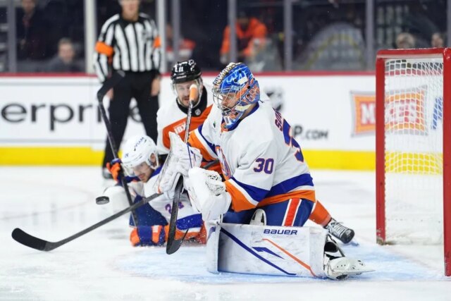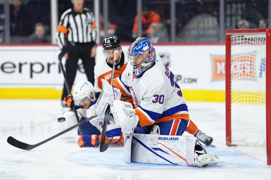 Ilya Sorokin fez 21 defesas em sua sexta derrota como líder da liga, na vitória do New York Islanders por 4 a 0 sobre o Philadelphia Flyers na segunda-feira.